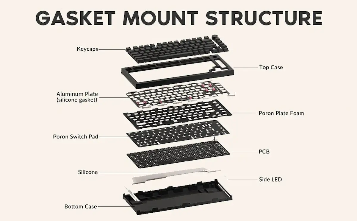 - Cấu trúc Gasket mount, Plate PC giúp âm gõ đều nhau ở các row.