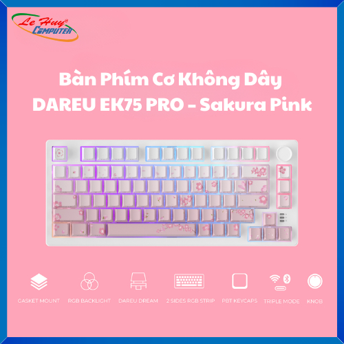 Bàn phím cơ không dây DAREU EK75 PRO – Sakura Pink RGB (Dream Switch)