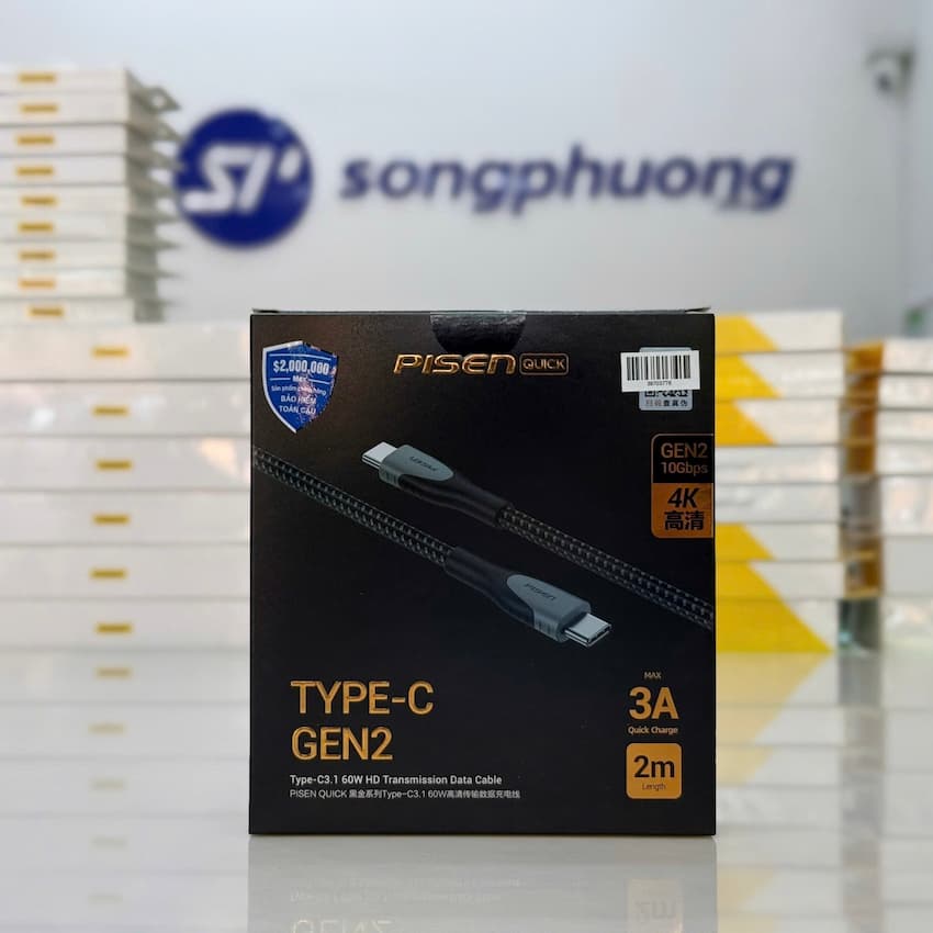 Cáp PISEN Quick Black Gold Dual Type-C (C to C) 3.1 GEN2 2000mm 60W 3A ( NJ-TC16-2000)
