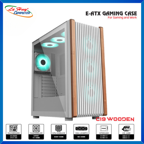Vỏ Case Máy Tính VSP E-ATX Gaming C19 Wooden (White)