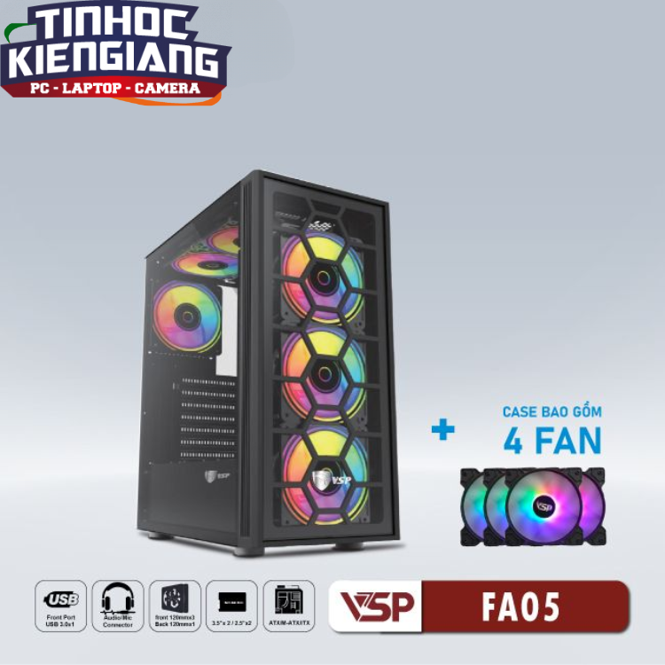 Vỏ máy tính VSP FA05 Đen (kèm 4 fan LED)